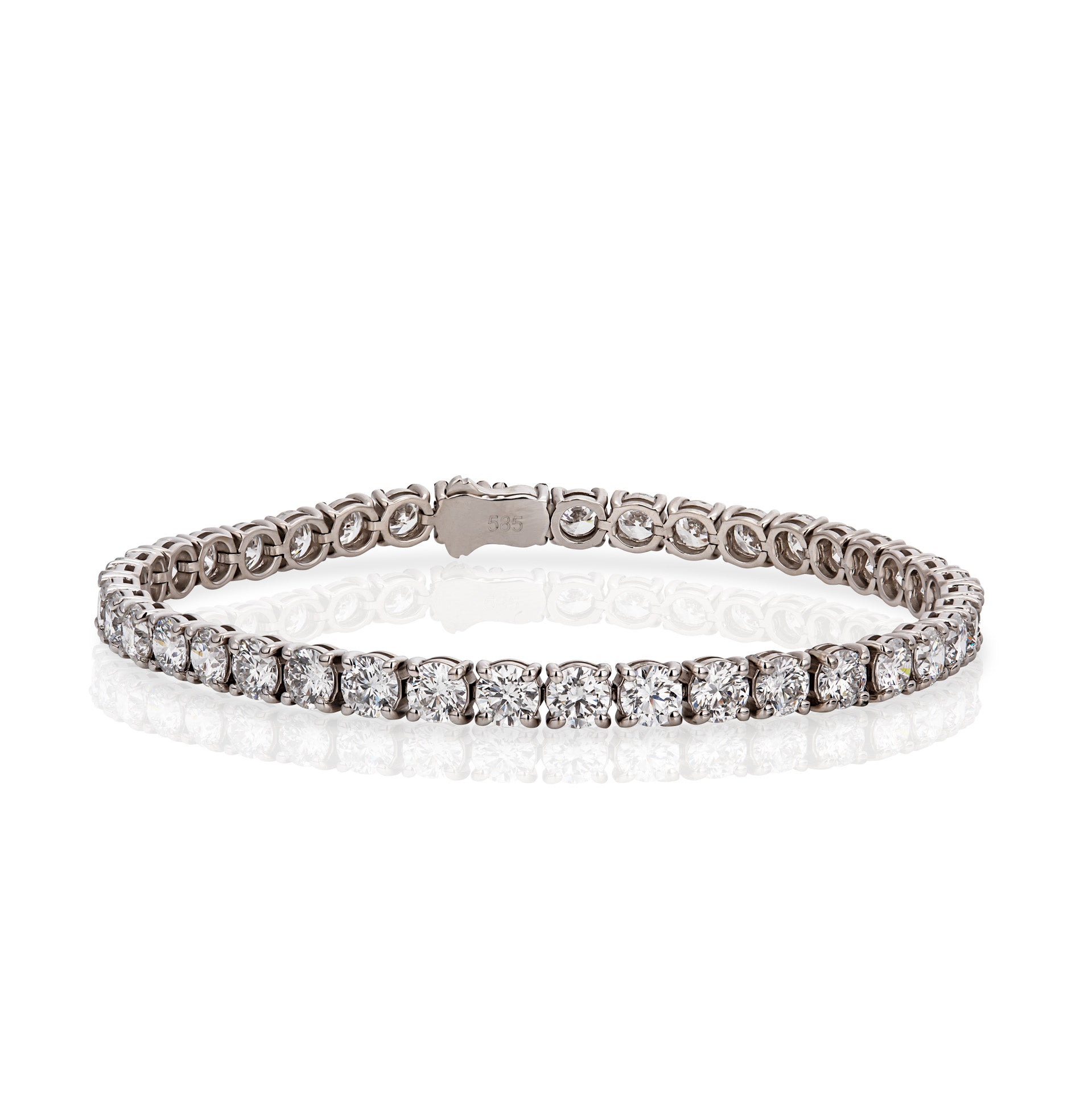 Meet the "Cynthia" tennis bracelet, available in two sizes. Crafted in exquisite white gold, it makes a bold fashion statement. This bracelet exudes a sense of luxury and sophistication, an essential addition to your jewelry collection.