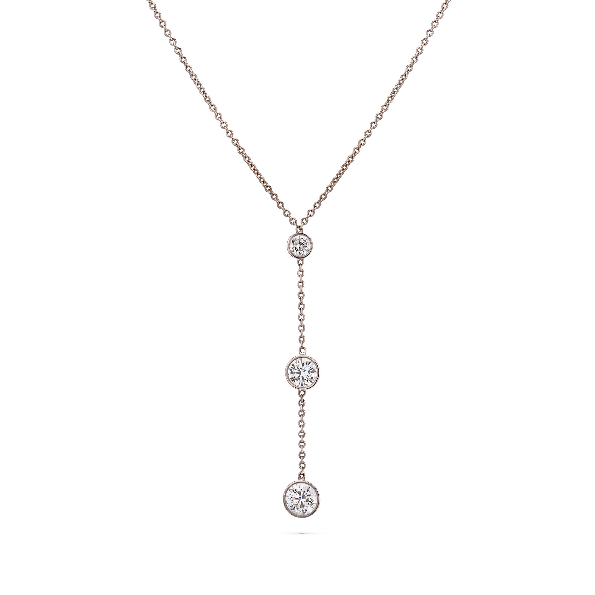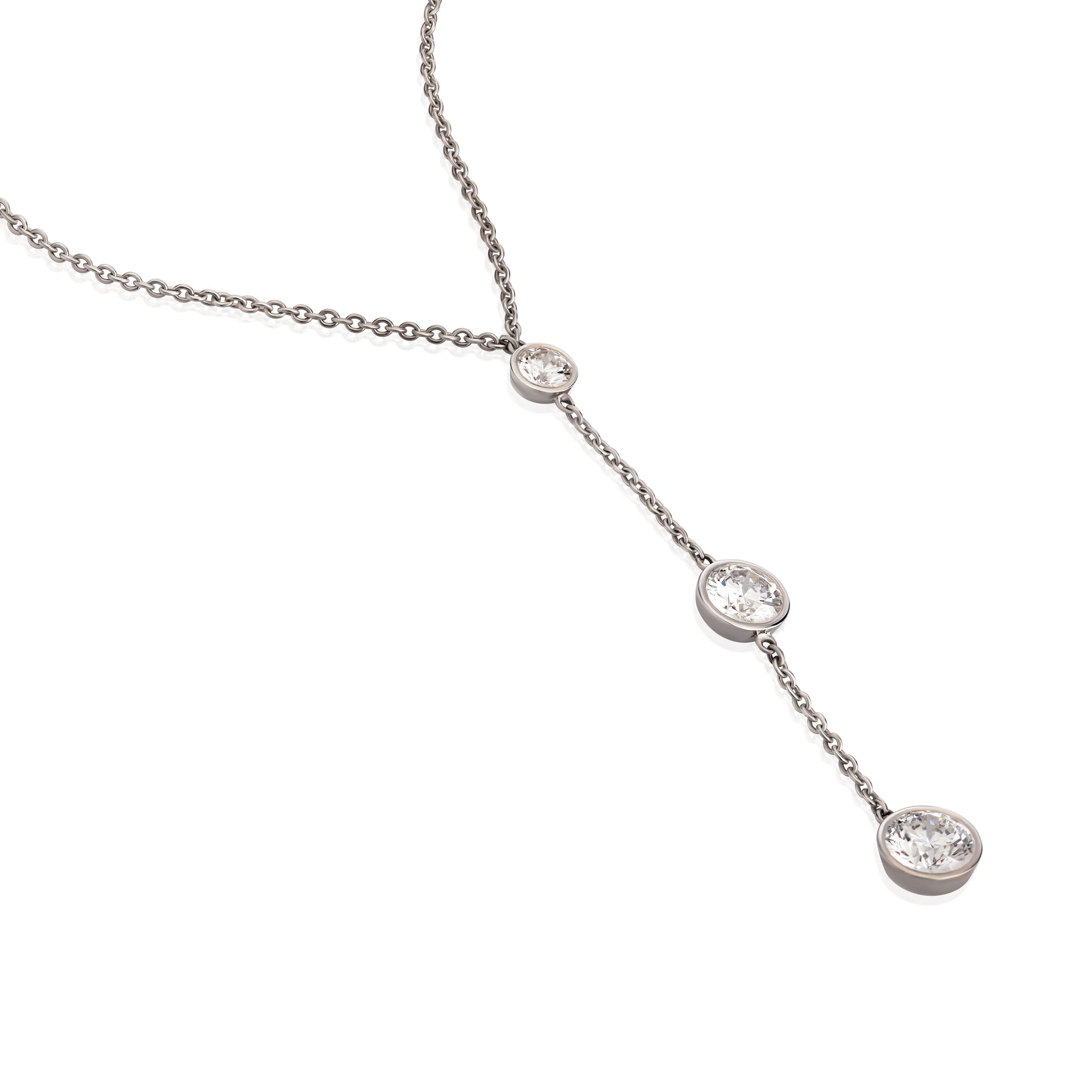 The "Mikaela" pendant, in white gold, is a captivating piece of jewelry with three descending diamond circles. This elegant design symbolizes life's journey, making it the ideal accessory for treasuring your precious moments.