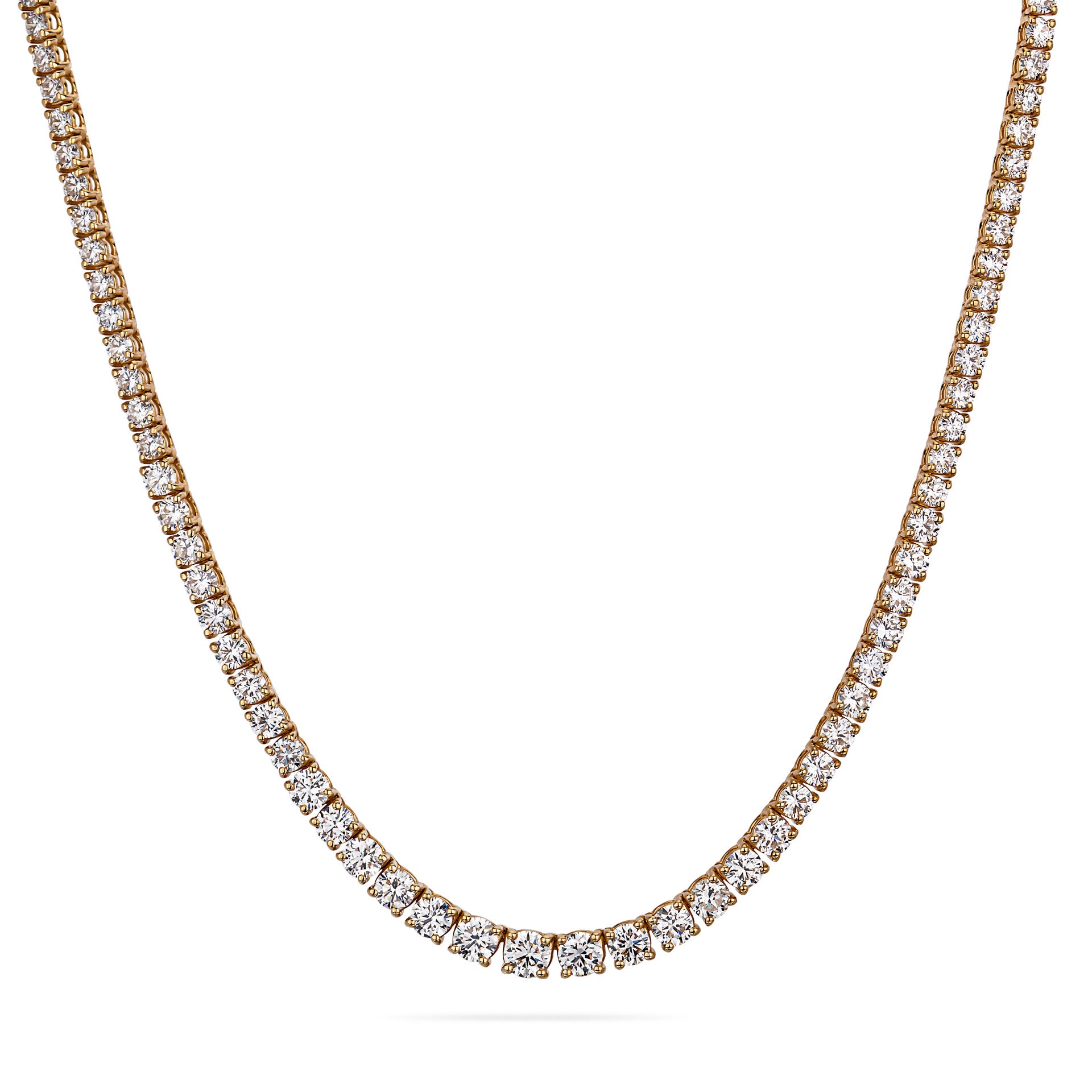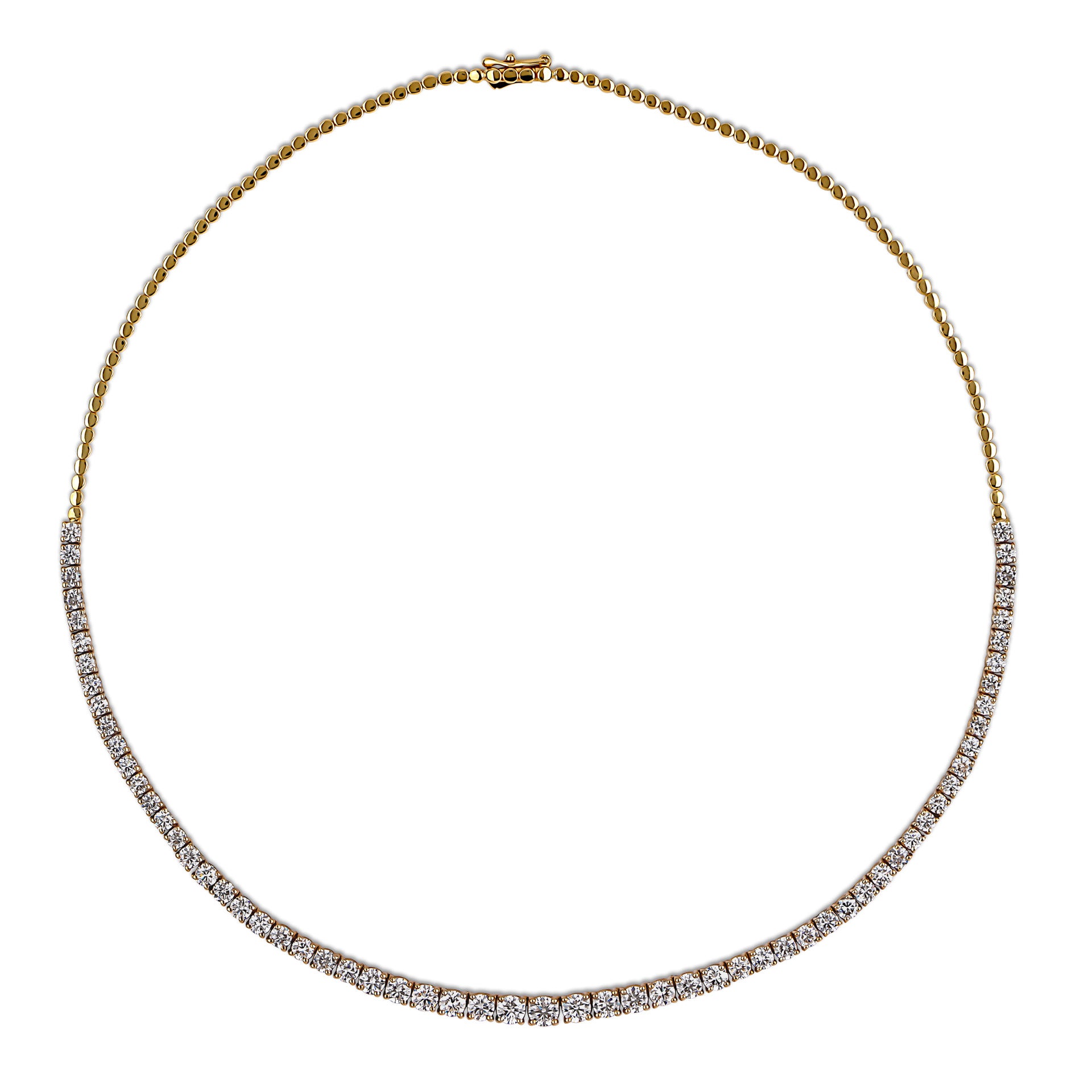 Introducing "Mona," a captivating yellow gold diamond necklace that exudes timeless elegance. Adorned with an array of dazzling diamonds, it features a stunning centerpiece diamond that commands attention and radiates pure beauty, making it the ultimate statement piece. The stones around the Mona grow from a small jewel the size of 0.1 carats all the way down to the centerpiece, that features a stunning 0.5 carat jewel.