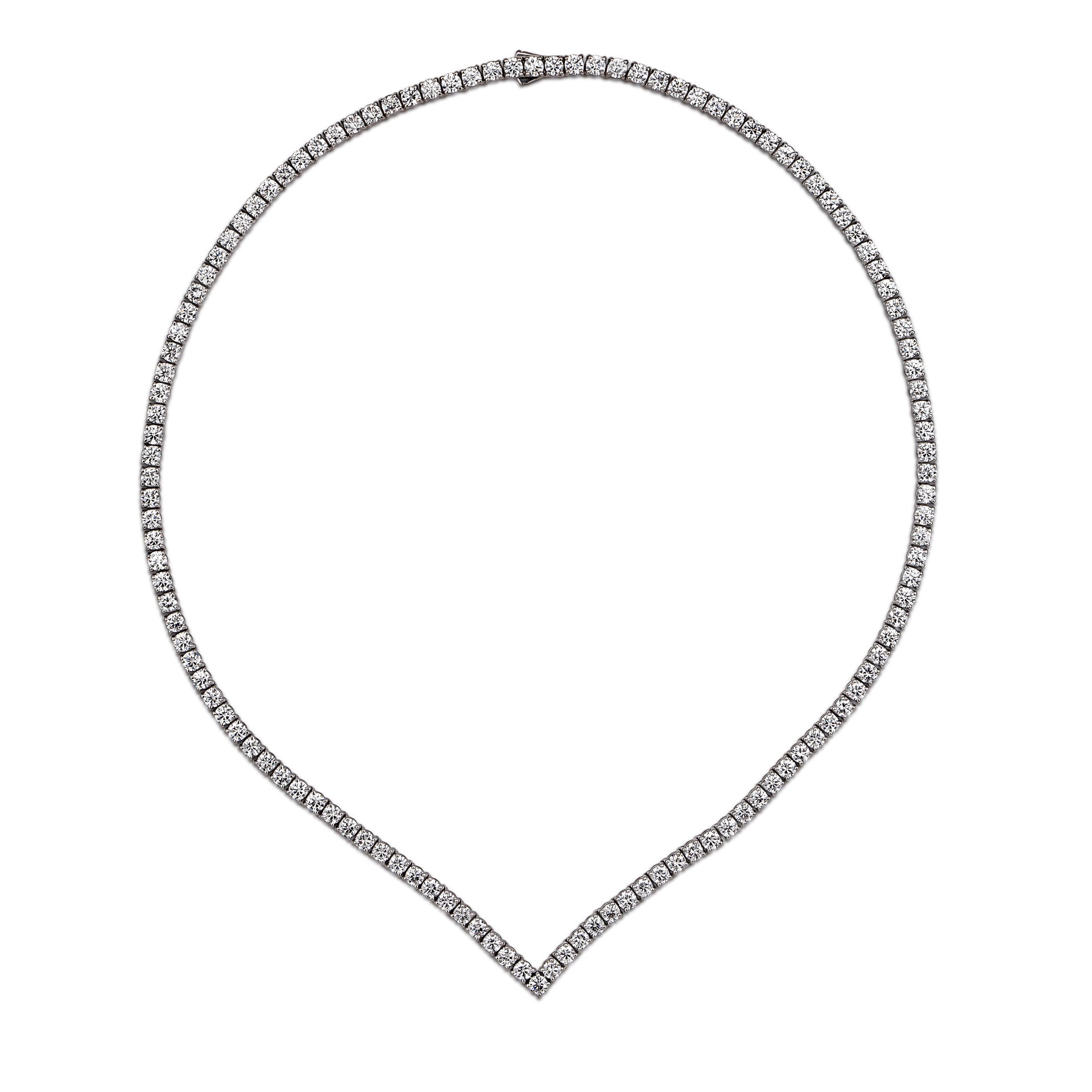 Introducing "Priscilla," a captivating white gold diamond necklace that exudes timeless elegance. Adorned with an array of dazzling diamonds, it features a stunning centerpiece diamond that commands attention and radiates pure beauty, making it the ultimate statement piece.