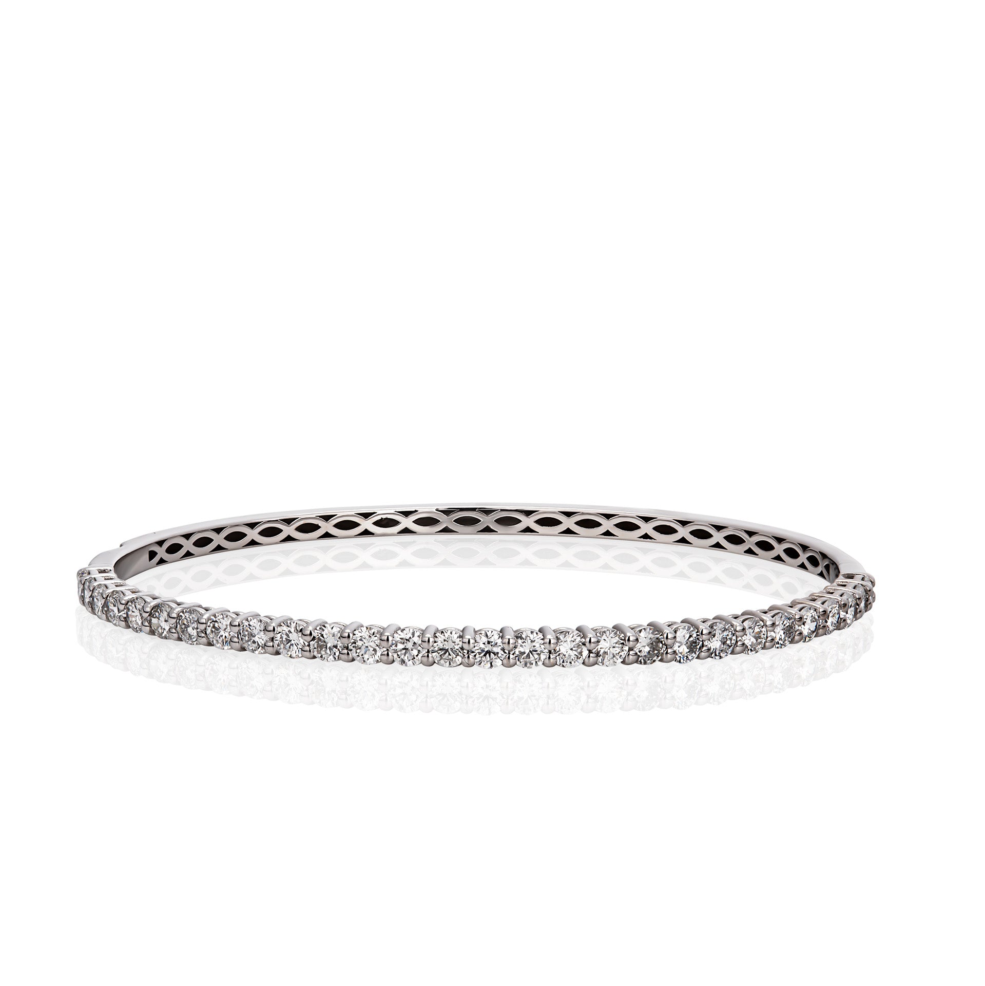 Experience the allure of the "Bea" bangle – a sleek, white gold masterpiece adorned with an array of exquisite jewels. Its modern design exudes sophistication, making it a perfect addition to your jewelry collection for a touch of contemporary elegance.